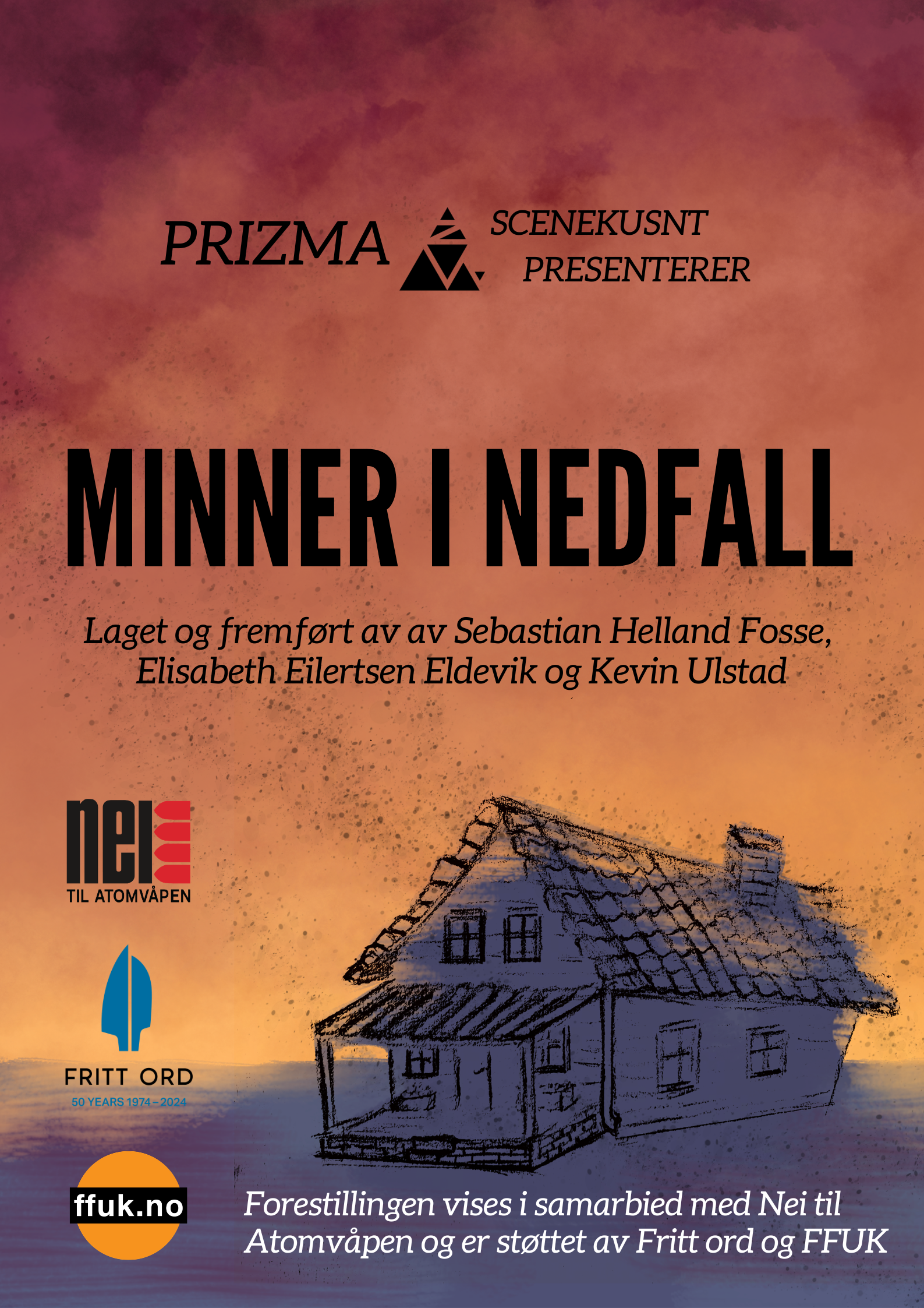 Minner i nedfall blir spilt på Sentralen 23. januar, i samarbeid med Nei til Atomvåpen, i deres 5 års markering av at FN vedtok en traktat som forbyr atomvåpen. Videre kommer denne forestillingen til å settes opp i forbindelse med totalforsvarsåret 2026 og Nei til Atomvåpen, som er vår samarbeidspartner i denne forestillingen.